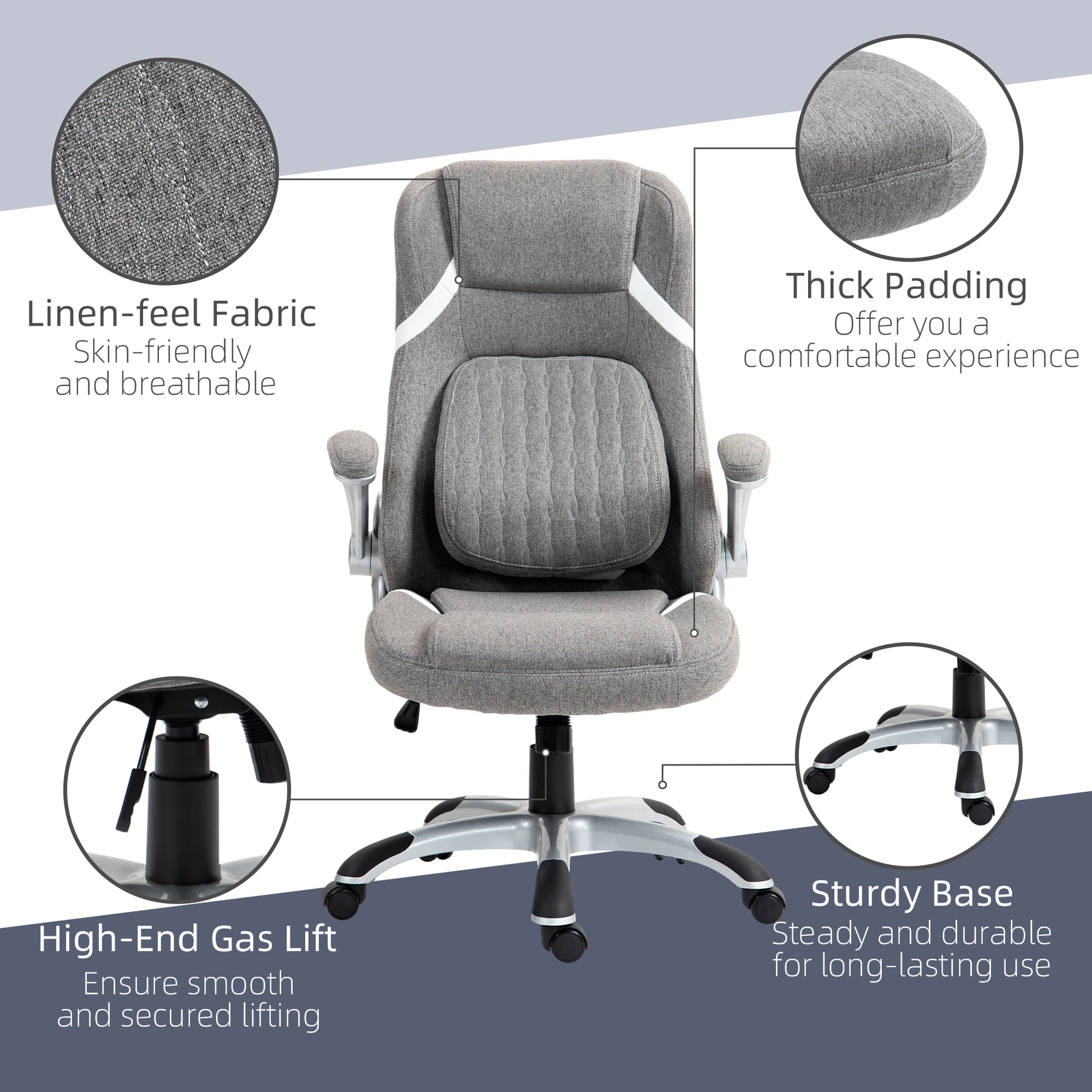 - High back for support, with foam padding and linen-look upholstery for comfort
